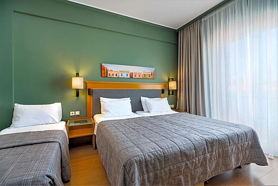 Family room consists of two rooms. One with a double bed and the other with two twin beds pushed together. Each room has its own marble bathroom with shower and communicate with a connecting door. This room type offers a street view.